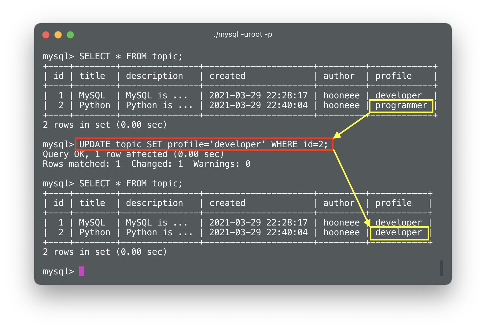 mysql> UPDATE [table_name]