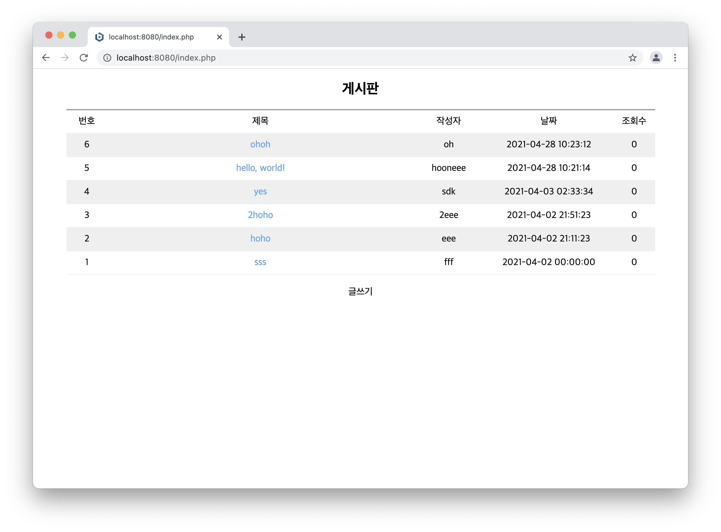 게시판의 목차를 보여주는 index.php부터 구현하였다.