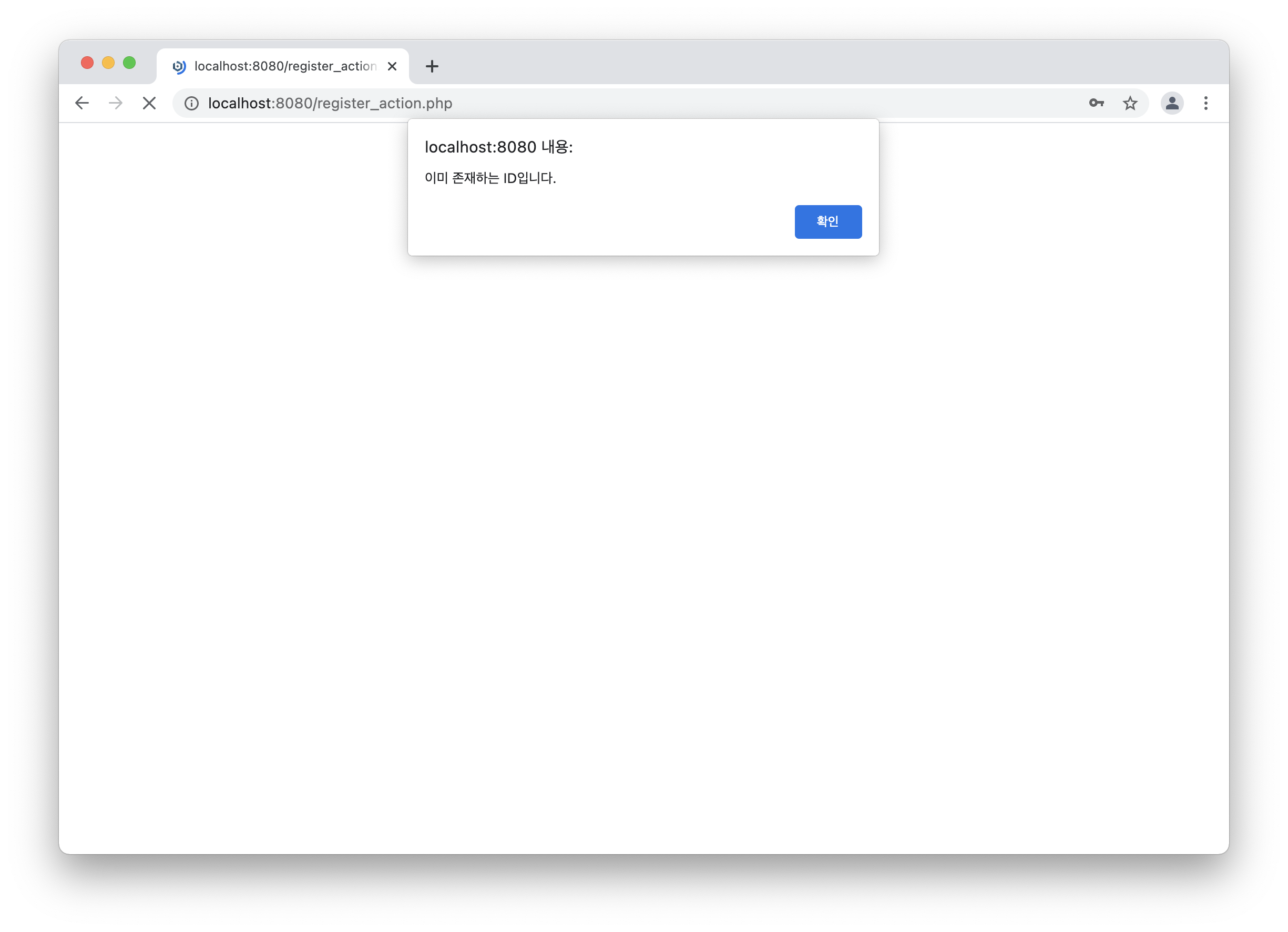 마찬가지로 ID와 PW를 POST 방식으로 register_action.php에 넘긴다.