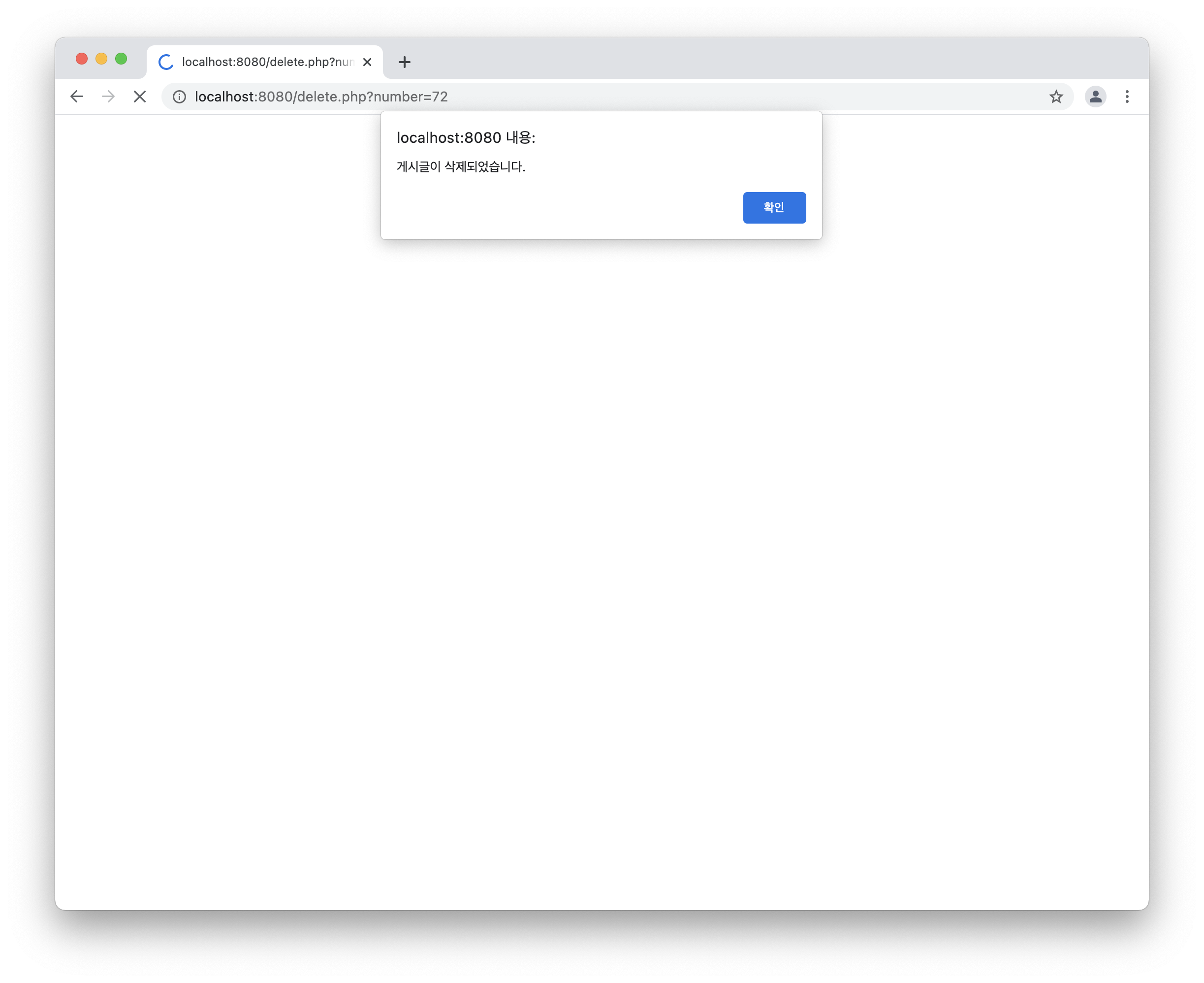 반대로 확인 버튼을 클릭하면 delete.php로 접근한다.