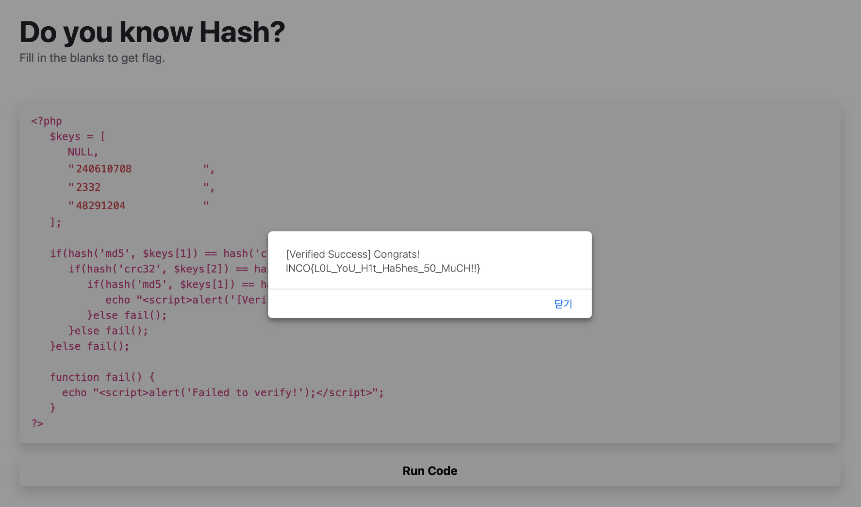 flag : INCO{L0L_YoU_H1t_Ha5hes_50_MuCH!!}