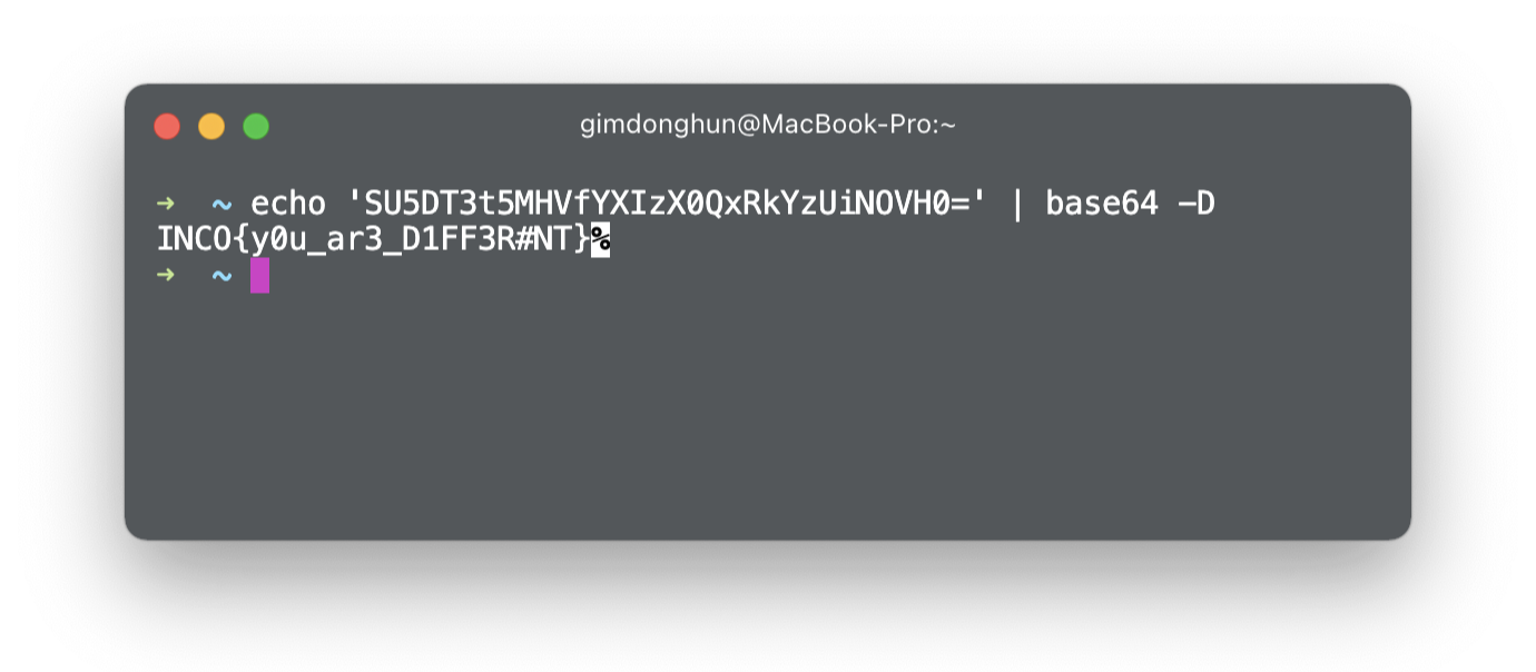 base64 인코딩된 것으로 보이므로 디코딩하면 끝난다.