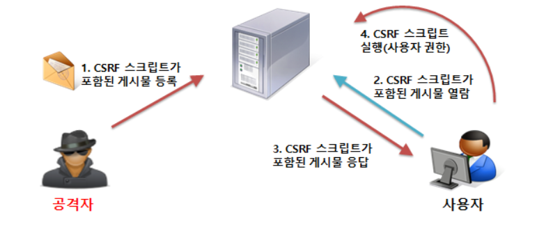 3. 관리자 및 사용자 고유 권한으로 공격자가 원하는 CSRF 스크립트 요청이 발생한다.
