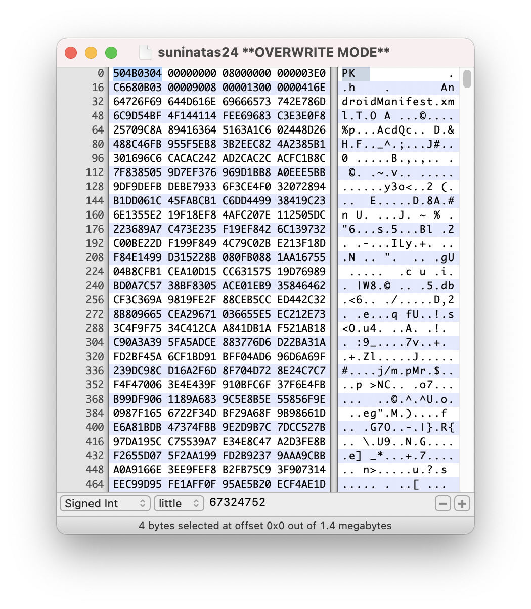 헤더 시그니처는 504B0304 / PK로 압축 파일인 것을 알게 되었으니 압축을 풀어보자.