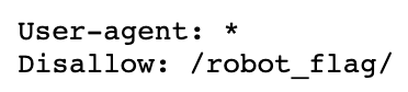 여기서도 로봇 접근을 제한하기 위해 Disallow로 /robot_flag/ 디렉토리를 나열해 놓았으니 해커 입장에서는 땡큐다.