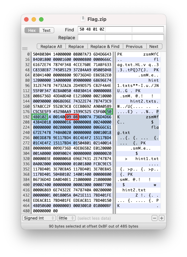 그럼 이 개념을 'Flag.zip' 파일에 적용해 봅시다.
