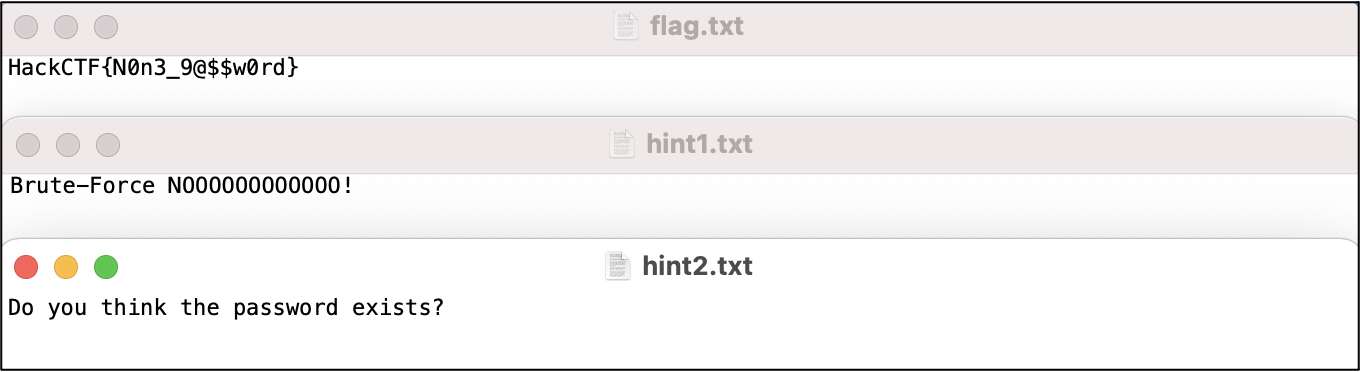 무슨 상황인가 했는데 'hint1.txt'에서 Brute-Force 즉, 무차별 대입 공격을 하지말라는 문구가 있는 것을 보니 원래 flag.txt 파일에 잠금이 걸려 있는 것 같네요.