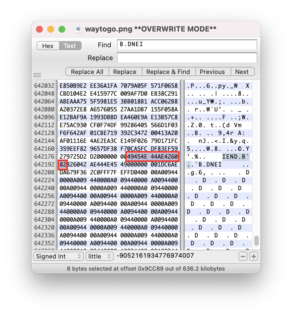 png 확장자의 푸터 시그니처인 '49 45 4E 44 AE 42 60 82'를 찾아봅니다.