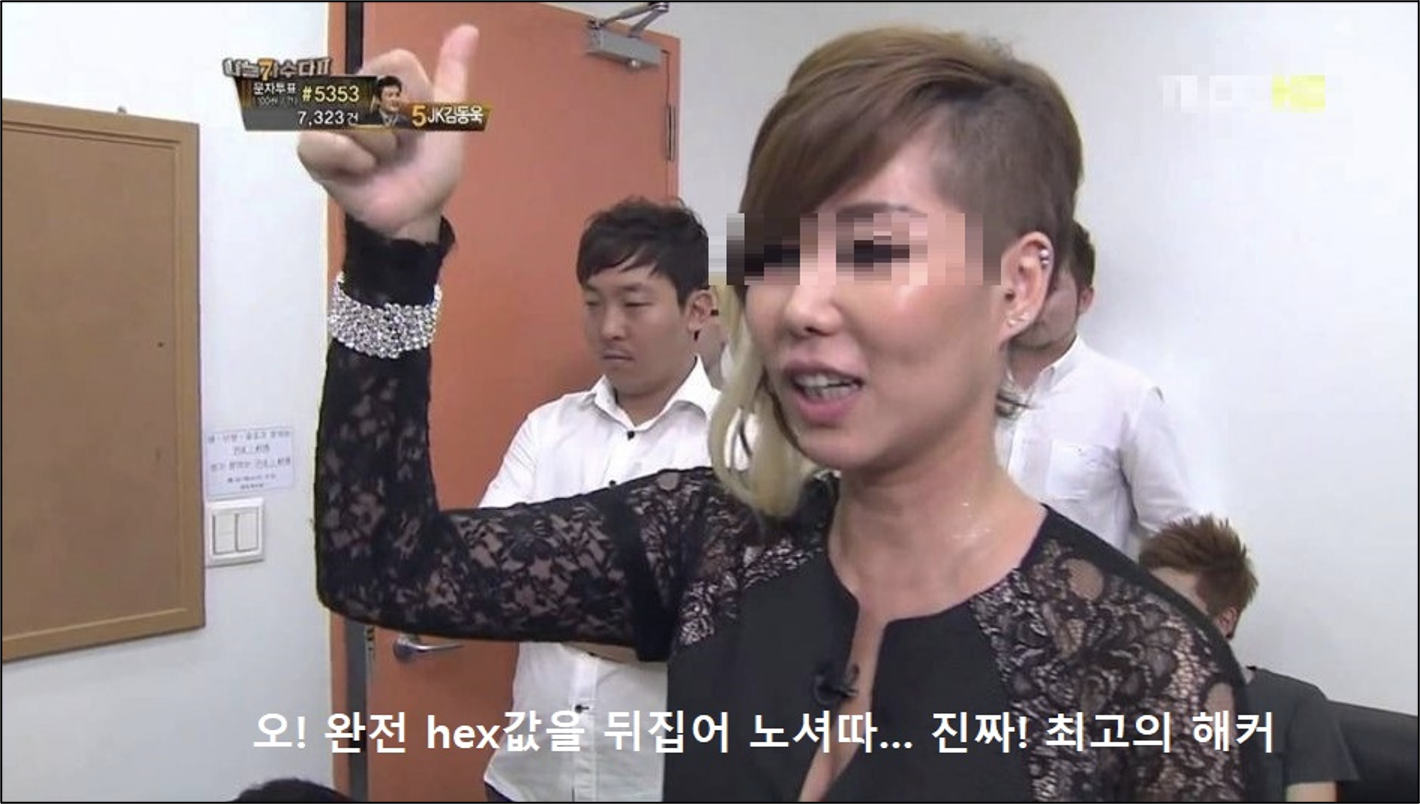 민망한 사진이 하나 나오는군요,,,, 뭐 일단.. hex 값을 뒤집어 놓으셨답니다...
