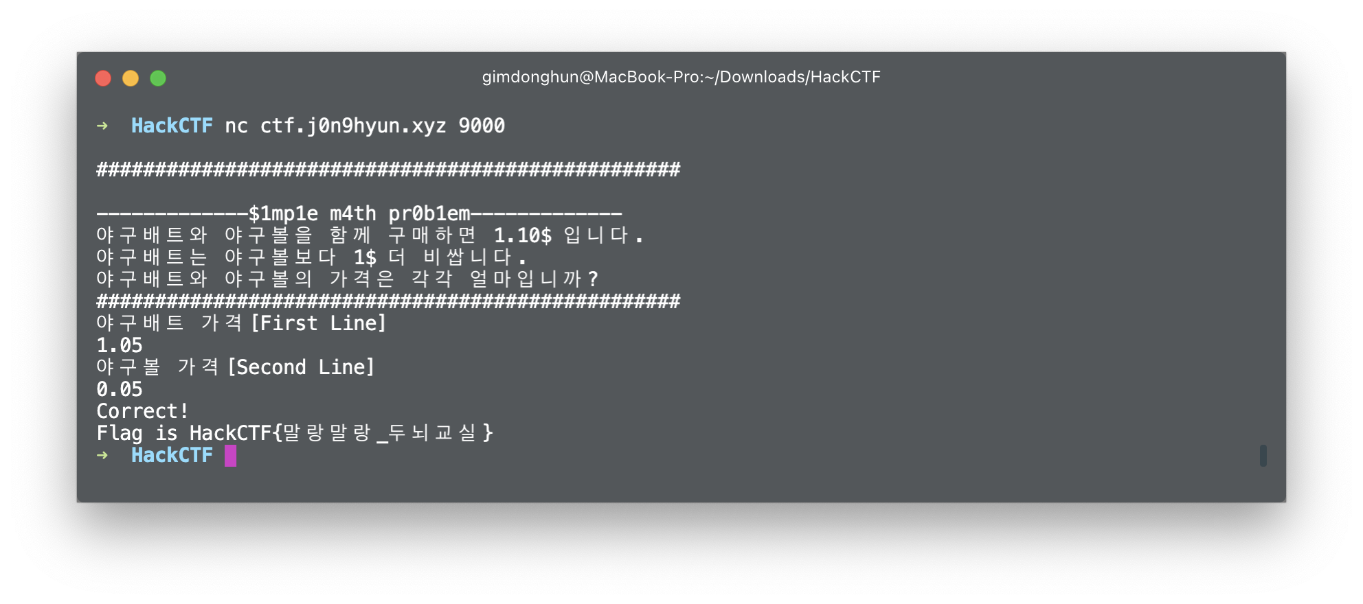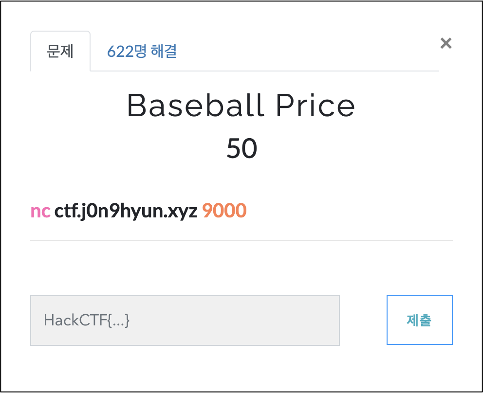 [MISC] HackCTF Baseball Price(50p) Write Up 본문