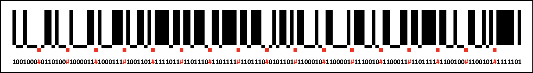 또한, 맨 아래의 점이 8개의 줄(점)마다 주기적으로 나와있는 것을 보아 binary 값들 사이를 구분하는 역할을 하지 않을까 생각했습니다.
