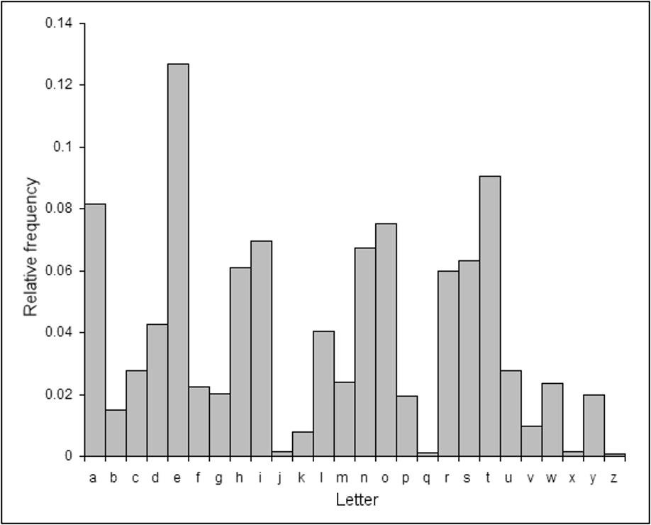 대체적으로 각 문자의 출현빈도는 위 그래프와 유사하다고 합니다.