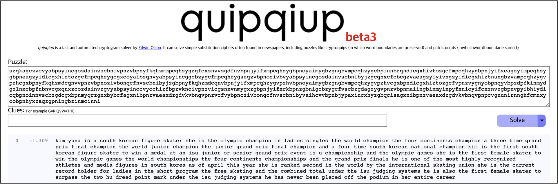 https://quipqiup.com/ 사이트를 통해 문제에 명시된 암호문을 쉽게 해독할 수 있었습니다.