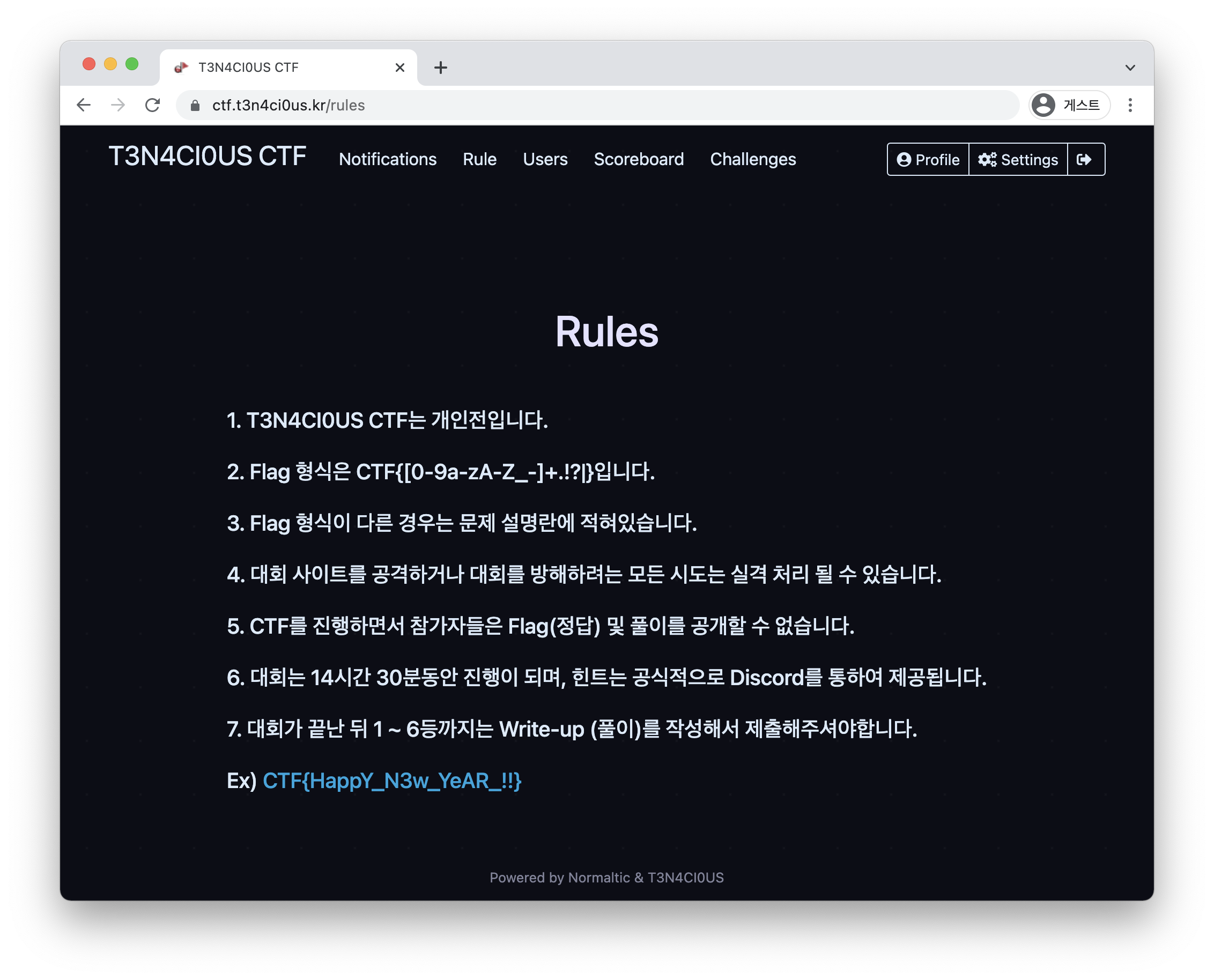 T3N4CI0US CTF의 Rule 페이지를 보자.