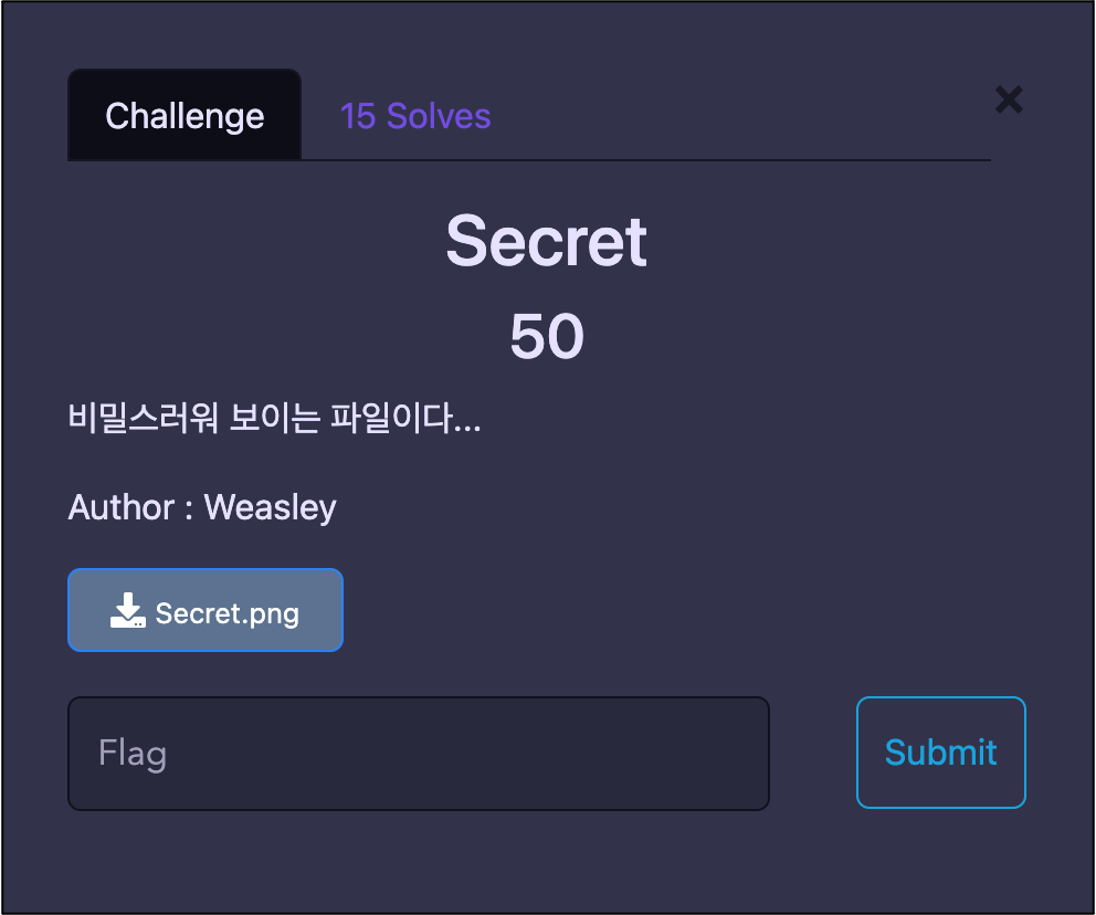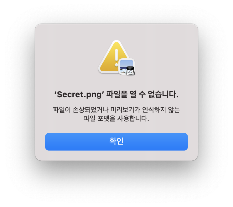 Secret.png 파일을 다운로드하고 실행해보니 열리지 않는다.